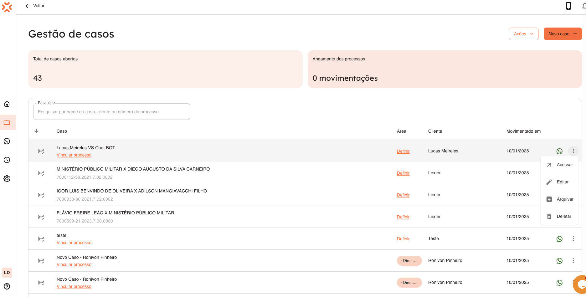 3. Confirme a ação e pronto! O limite de casos ativos será ajustado automaticamente conforme os casos arquivados ou deletados.